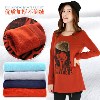 【伙拼】芙蘭奇 韓版冬裝簡約時尚印花中長款加絨打底衫 650 /