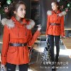 年終清倉 大碼女裝毛領(lǐng)收腰拉鏈裝飾呢料外套 配送腰帶1285 /