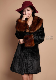 歐美7碼仿貂皮大衣水貂皮草中長款2014新款毛領(lǐng)仿皮草外套 /