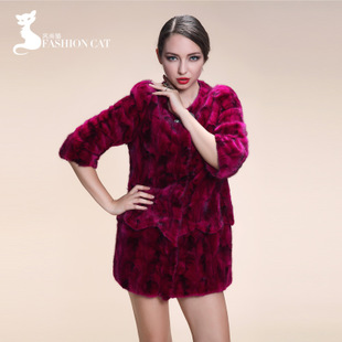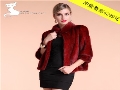風(fēng)尚貓 2014新款水貂整貂韓版立領(lǐng)短款酒紅色皮草外套貂皮大衣 /