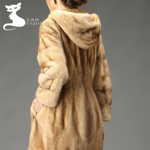 風(fēng)尚貓 海寧水貂整貂中長款連帽皮草外套貂皮大衣 2014新款特價 /