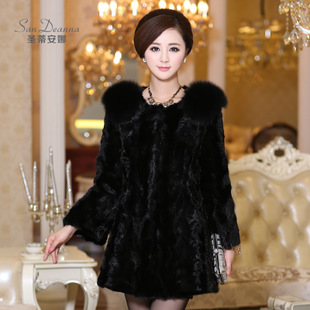 廠家直銷 海寧皮草新款貂皮大衣女士中長款水貂外套拼貂狐貍毛領 /