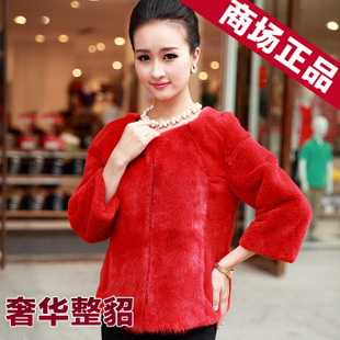 貂皮大衣女款整貂短款獺兔毛袖子2014新款女士水貂外套海寧直銷 /