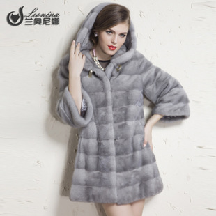 2014哥本哈根水貂整貂打橫整貂外套女 中長(zhǎng)母貂整貂連帽裘皮大衣 /