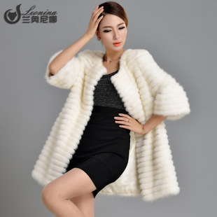 2014新款貂皮大衣整貂女中長(zhǎng)款七分袖皮草外套裘皮水貂整貂 白色 /