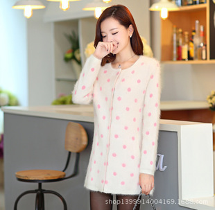 歐洲站加厚貂絨大衣圓點外套 女裝長毛貂中長款高端大衣貂絨外套 /