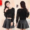 韓國(guó)正品代購春新款蕾絲衫 韓版短款長(zhǎng)袖T恤 蕾絲花瓣鏤空打底衫 /