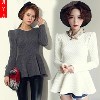 韓國(guó)代購秋冬新款長(zhǎng)袖T恤 韓版修身紋路提花荷葉邊下擺顯瘦上衣 /