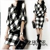 歐洲站秋冬裝新款英倫格子蝙蝠袖中袖修身長(zhǎng)裙連衣裙包臀棉氣質(zhì)裙 /