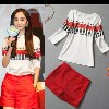 849# 2013楊冪明星同款 英倫風(fēng)士兵印花寬松T恤+紅色短褲套裝 /