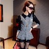 新款 時(shí)尚小翻領(lǐng)小洋裝 千鳥格拼接蕾絲 荷葉擺 格子襯衫上衣 /