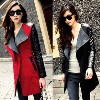 工廠直銷秋季新款皮拼接大翻領(lǐng)撞色中長(zhǎng)款女毛呢大衣女外套批發(fā) /
