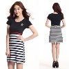 晴薇兒夏裝新款 韓國時尚修身短袖條紋徽章連衣裙 代理加盟批發(fā) /