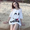 晴薇兒韓國夏季新款大碼寬松露肩 女裝短袖T恤笑臉 代理加盟批發(fā) /