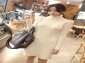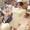 一件代發(fā)批發(fā)韓國東大門泡泡袖修身高領(lǐng)麻花針織連衣裙長款毛衣 /