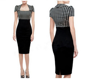 2014新款瑞麗 熱賣歐美爆款拼色千鳥格連衣裙優(yōu)雅大氣禮服裙 /