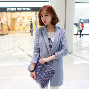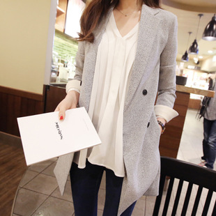 2015春季新款韓版女式中長款外套 高檔韓國棉麻料時尚氣質(zhì)小西裝 /