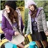 批發(fā) 秋冬女裝紫色V黑白格子兩面穿短款加厚休閑棉衣棉襖外套2044 /