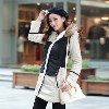 2013新款冬款新品韓版中長款修身保暖長袖連帽拼色加厚棉衣外套 /