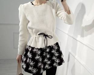 一件代發(fā)2014新款韓版百搭白色波浪邊設計上衣+背心連衣裙兩件套 /