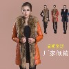 2013秋冬新款海寧皮衣貉子毛領(lǐng)女人中長款綿羊真皮羽絨服皮衣 /