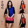 2013新款 時尚撞色POLO領(lǐng)羊毛連衣裙 韓版長袖品牌針織連衣裙 /