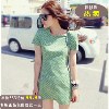 2013夏女裝新款韓國代購綠茶印花短袖修身連衣裙子 廣州衣服批發(fā) /
