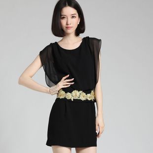 • 2015春裝新款夏裝韓版腰花雪紡蕾絲連衣裙圓領(lǐng)時尚真絲連衣裙 /