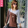 【安哲麗】新款韓版女裝女士打底衫修身顯瘦拼接撞色長(zhǎng)袖t恤批發(fā) /