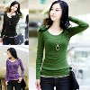 新品韓版女裝大碼修身長袖T恤 百搭潮流拼接圓領(lǐng) /