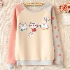 簡介: 貨源類別:現(xiàn)貨顏色:煙灰,藏青,淺藍(lán),珊瑚粉流行元素/工藝:扎染,印花/印染,拼貼/拼接 產(chǎn)地:其他是否庫存:是版型:寬松型 上市年份/季節(jié):2013冬季厚?。杭雍耦I(lǐng)型:圓領(lǐng) 主圖來源:實拍有模特袖長:長袖面料成分:棉混紡 尺碼:均碼組合形式:單件套款式:套頭 袖型:常規(guī)袖庫存類型:整單面料:棉類混紡 風(fēng)格:甜美圖案:卡通衣長:普通款(50cm<衣長≤65cm)
