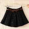2013秋冬韓版女裝千鳥格子波點(diǎn)毛呢呢子短裙半身裙送腰帶 /