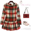 13秋冬韓版女裝經(jīng)典優(yōu)雅格紋修身長(zhǎng)袖毛呢公主連衣裙U2-9879 /