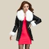 冬季新款韓版修身PU皮棉衣 批發(fā)女裝大毛領中長款女士外套 /