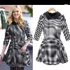 新款女裝歐美秋裝連衣裙長袖娃娃領(lǐng)英倫千鳥格羊毛呢冬裙 /