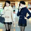 爆款批發(fā)冬季新款兔毛領(lǐng)雙排扣毛呢外套女裝韓國中長款呢子大衣 /