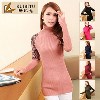 2013秋冬新款純色圓領下蕾絲邊寬松毛衣 中長款女式針織毛衣批發(fā) /