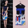 歐美女裝新款高圓圓明星同款拼接撞色幾何印花修身連衣裙(缺貨) /