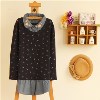 外貿(mào)女裝新款日系HJBF毛青波點(diǎn)雪紡拼接百褶裙修身顯瘦長袖連衣裙 /