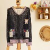 森女系小清新cay cassin圓領(lǐng)長袖鏤空蕾絲連拉鏈小熊貼補(bǔ)開衫外套 /