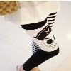 牛奶絲舒適九分褲朋克骷髏頭印花拼接彈力打底褲黑白條紋緊身褲 /