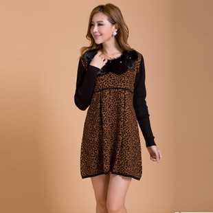 新款大碼女裝豹紋燙鉆長(zhǎng)款羊絨品牌秋季連衣裙寬松中腰A字裙批發(fā) /