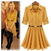 2014年春季新款雪紡連衣裙歐美款收腰七分袖雪紡裙 女裝廠家直銷 /