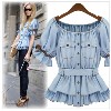 2014春季新款牛仔衣批發(fā) 歐美版短袖收腰上衣淺藍色短袖襯衣 /