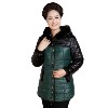 新款帶帽中老年服裝 中長款中老年女裝棉衣pu皮衣媽媽裝棉 /