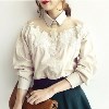 韓國(guó)最新款Naning9復(fù)古刺繡拼歐根紗透視寬松長(zhǎng)袖襯衫襯衣女裝批 /