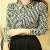 新款歐美風(fēng)女裝襯衣百搭鑲鉆 千鳥格長(zhǎng)袖雪紡襯衫 特價(jià)尾貨 /
