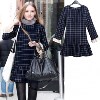 歐洲站2013秋裝新款潮 時(shí)尚拼袖圓領(lǐng)格子秋裝連衣裙氣質(zhì)短款裙子 /