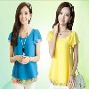 2013夏裝新款韓版寬松花色圓領(lǐng)韓版雪紡衫短袖上衣小衫女 送項(xiàng)鏈 /