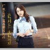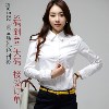 一件代發(fā)韓版536 大碼女裝白領(lǐng)撞色OL通勤長袖白襯衫 職業(yè)女襯衫 /